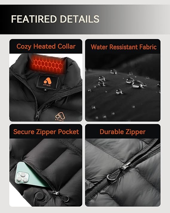 Product Description AVIDIA’s Heated Vest— a sleek, lightweight layer designed to keep your readers warm and active all winter long. Is designed with ultra-thin carbon fiber heating elements, providing instant and even warmth across the core. it’s a practical yet innovative solution for beating the cold without sacrificing style. Why it’s worth sharing with your audience: ✅ Instant & adjustable warmth – 3 heat settings to customize comfort ✅ Lightweight & mobile – Provides warmth without bulk, with a discreet USB-powered battery ✅ Versatile wear – Works alone or layered under jackets for all-day use